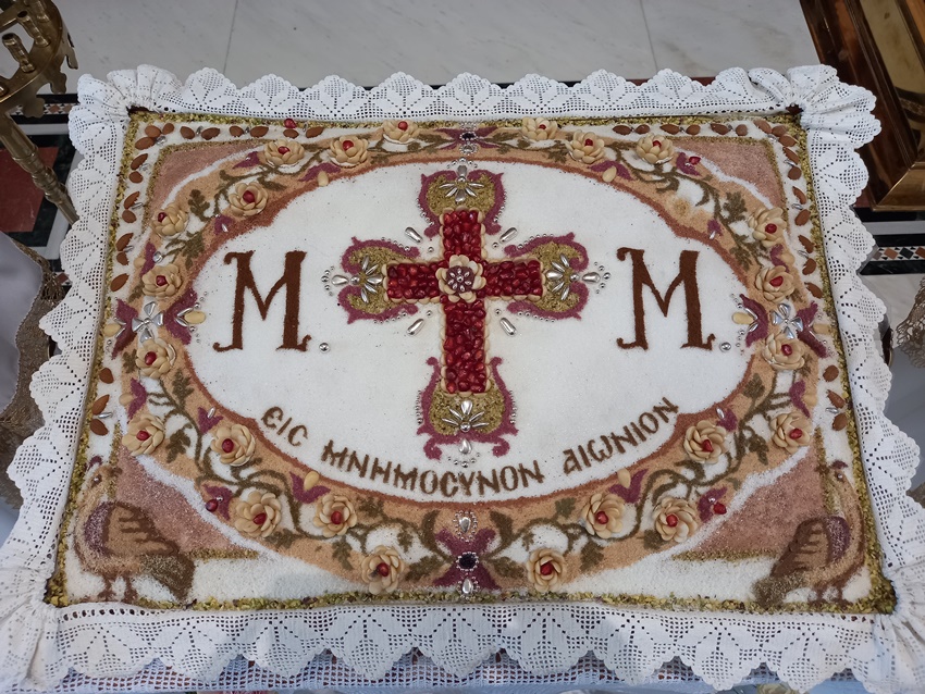 Ότι Συ ει η ανάστασις, η ζωή και η ανάπαυσις πάντων των κεκοιμημένων ευσεβώς ορθοδόξων χριστιανών, βασιλέων, πατριαρχών, αρχιερέων, ιερέων, ιερομόναχων, ιεροδιακόνων, μοναχών, πατέρων, προπατόρων, πάππων, προπάπζων, γονώνων, γονέων, των συπων. απ' αρχής και μέχρι των εσχάτων, και υπέρ του συγχωρηθήναι αυτοίς παν πλημμέλημα εκούσιον τε και ακούσιον. Χριστέ ο Θεός ημών και Σοι την δόξαν αναπέμπομεν, συν τω ανάρχω σου Πατρί, και τω παναγίω, και αγαθώ και ζωοποιώ σου Πνεύματι, νυν και αεί και εις τους αιώνας των αιώνων.
