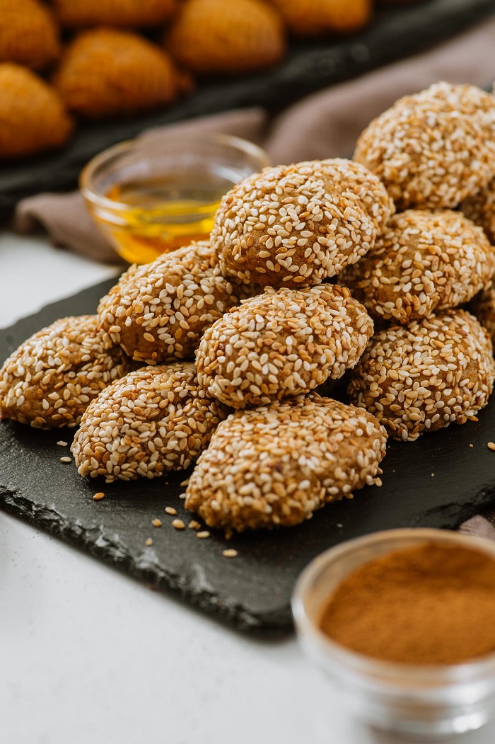 λίγο σουσάμι καβουρντισμένο μέσα στη ζύμη