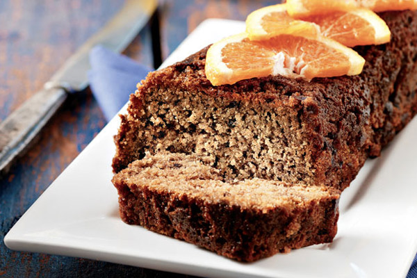 Σε ένα μεγάλο μπολ τοποθετούμε το κοσκινισμένο αλεύρι, τη σόδα και το αλάτι. Τ’ ανακατεύουμε με κουτάλι. Σε άλλο μπολ βάζουμε τη ζάχαρη, το χυμό πορτοκαλιού, το σπορέλαιο, το ξύσμα πορτοκαλιού, το ξίδι και τη βανίλια. Τα χτυπάμε με το σύρμα 2΄-3΄, να διαλυθεί η ζάχαρη. Προσθέτουμε το μείγμα των υγρών στο μπολ με το αλεύρι και ανακατεύουμε με το σύρμα μέχρι να ομογενοποιηθεί το μείγμα, για 2΄-3΄. Λαδώνουμε πολύ καλά μία μικρή μακρόστενη φόρμα και στρώνουμε λαδόκολλα στη βάση (γιατί ξεφορμάρεται δύσκολα). Αδειάζουμε το μείγμα. Ψήνουμε στους 170οC, σε καλά προθερμασμένο φούρνο, στις αντιστάσεις, για 40΄, έως ότου μπήγοντας το μαχαίρι στο κέντρο της φόρμας αυτό να βγαίνει πεντακάθαρο.