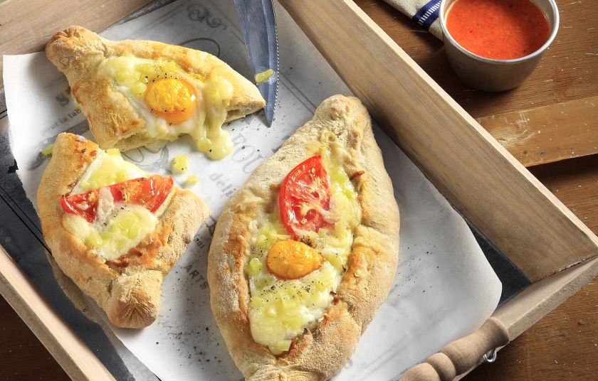 Πλάθουμε κάθε μπάλα ζύμης, την ανοίγουμε δίνοντάς της το χαρακτηριστικό σχήμα της βάρκας που έχουν τα πεϊνιρλί και τα βάζουμε στο ταψί.