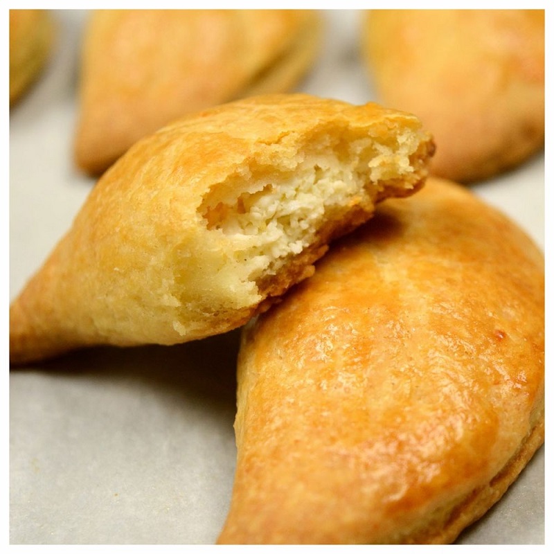 Παίρνετε τη ζύμη και την ανοίγετε σε φύλλο χοντρό. Κόβετε το φύλλο σε στρογγυλά κομμάτια, βάζετε μια κουταλιά από τη γέμιση, διπλώνετε σαν μισοφέγγαρο, στρίβετε και πιέζετε στις άκρες της ζύμης και αλείφετε με γάλα για να κολλήσει το πιτάκι.