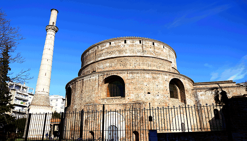 Στα χρόνια του Μεγάλου Θεοδοσίου (379-395) και αφού ο Ρωμαίος αυτοκράτορας βαπτίστηκε χριστιανός από τον Μητροπολίτη Θεσσαλονίκης Ασχόλιο, έγιναν στο μνημείο πολλές τροποποιήσεις, καθώς μετατράπηκε σε χριστιανικό ναό. Διαπλατύνθηκε μία από τις 8 κόγχες του, για να προστεθεί το ιερό (ανατολικά) και προστέθηκε περιμετρικά στο κυκλικό κτίσμα ένα κλίτος (στοά) πλάτους 8μ. με χαμηλωμένη στέγη, ενώ η κύρια είσοδος στο κτίριο μεταφέρθηκε από το νότο -όπου ήταν στη ρωμαϊκή εποχή- στη δύση, για να εξυπηρετηθούν οι ανάγκες που επέβαλε το τελετουργικό της νέας χριστιανικής θρησκείας.